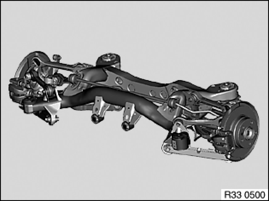 - Remove complete rear axle carrier [1][2]33 31 000 Removing and Installing Complete Rear Axle Support