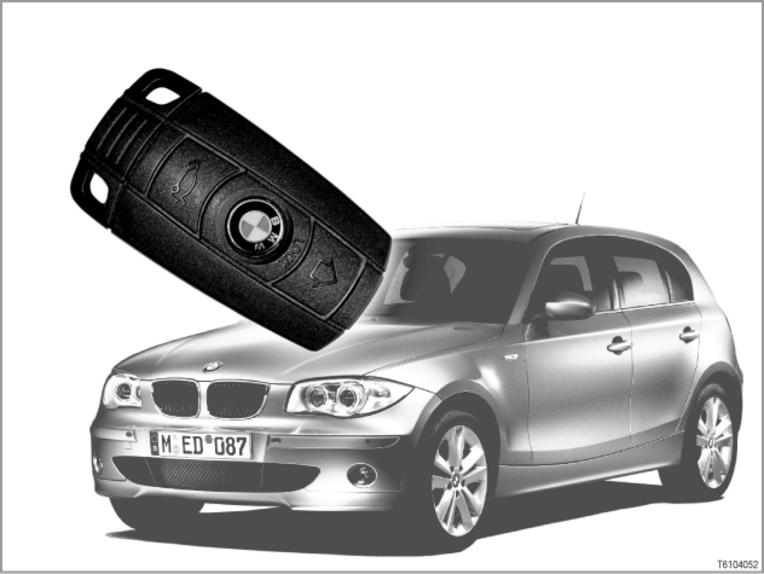 The remote control allows the vehicle to be locked/deadlocked via radio (aerial interface). The radio signals from the remote control are received by the FBD receiver (receiver for remote control) and transferred to the CAS control unit.