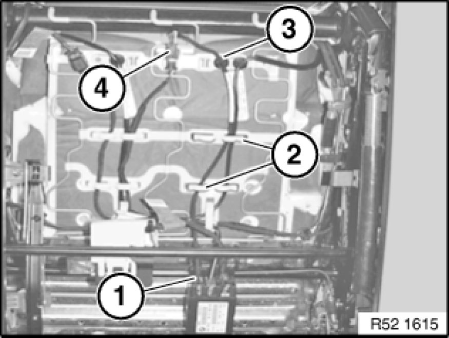 Disengage seat heating cable (2) from cable holders (3).