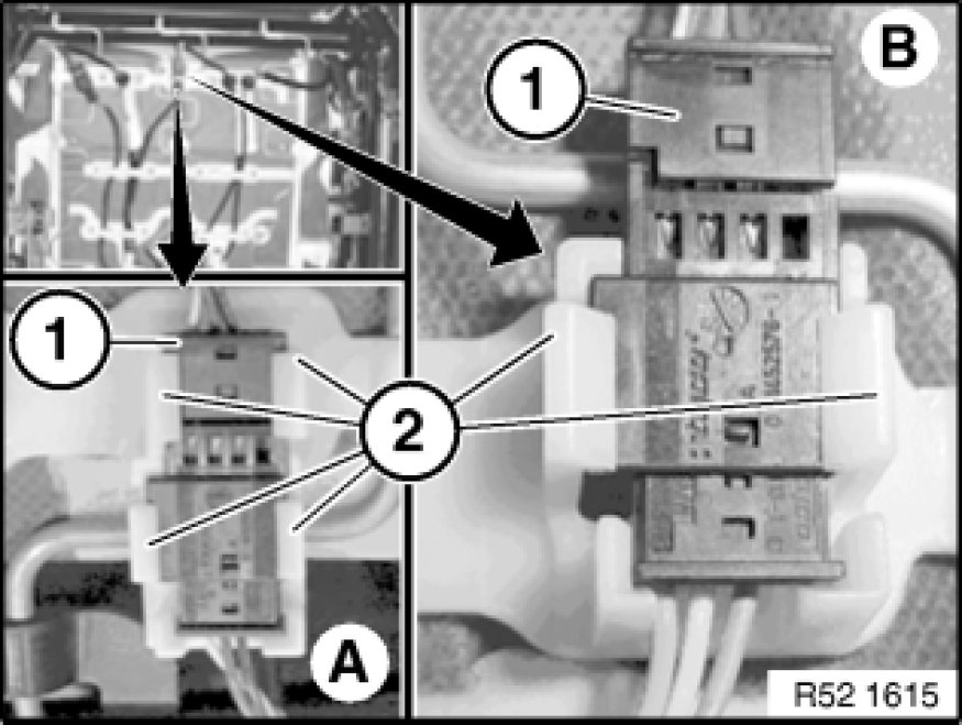 Make sure plugs (1) are correctly seated in catches (2).