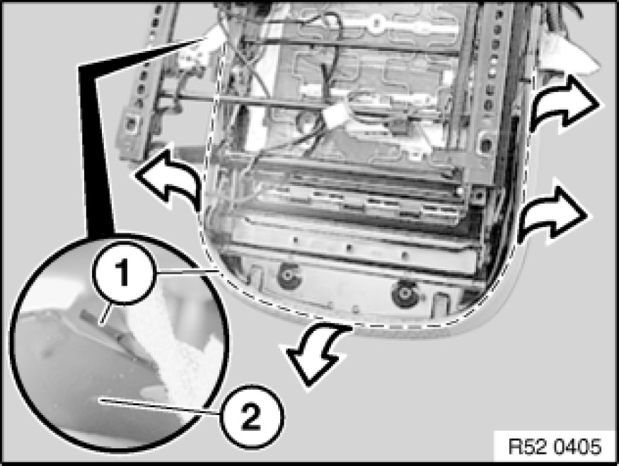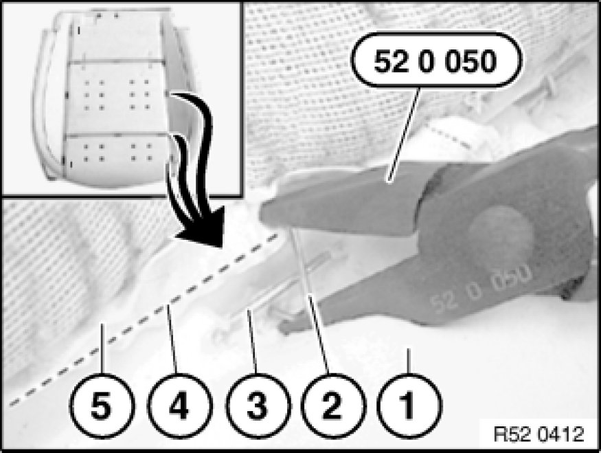 52 13 400 - Replacing seat cover on left or right front seat (normal/manual)