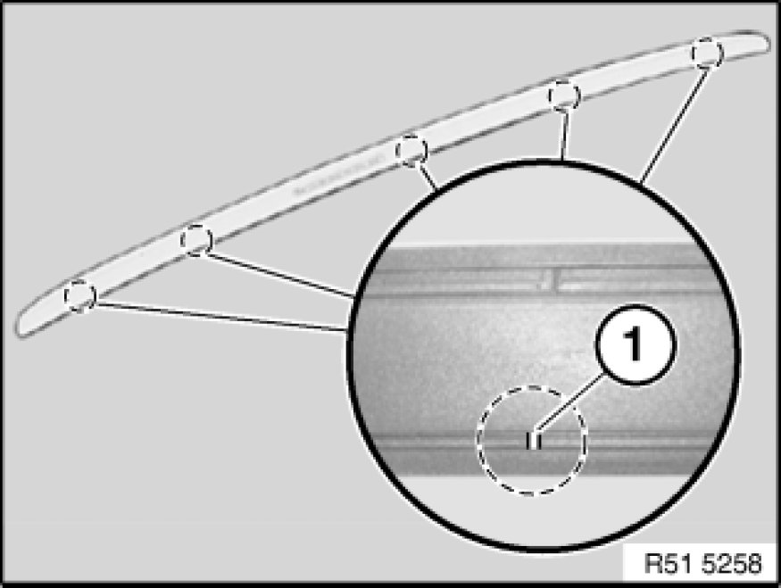 To avoid paintwork damage, make sure markings (1) are only applied to adhesive tapes.