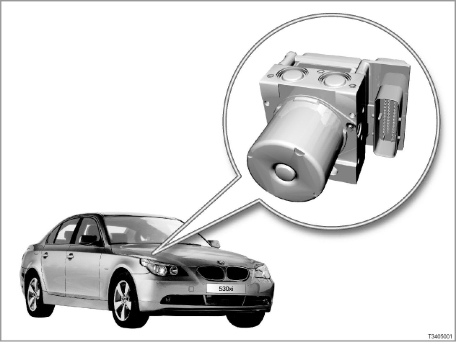 The DSC control unit regulates the pressure in the brake system via the hydraulic unit (comprises valve block and pump motor).