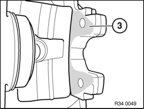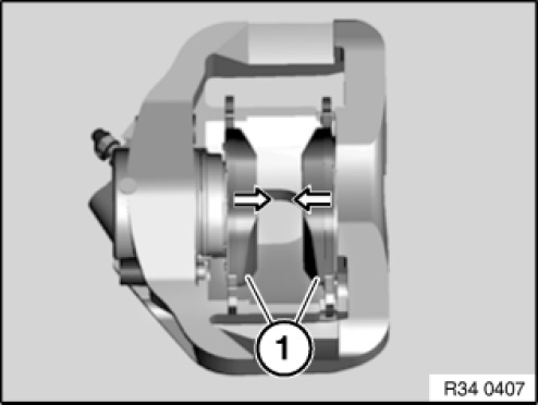 So as not to damage the surface coating, if possible do not mechanically clean the guide surfaces for the brake pads on the brake caliper mounting bracket. Instead, clean with brake cleaner BMW part no. 83 19 2 154 780 and apply a thin coating of brake pad paste BMW part no. 83 19 2 158 851.