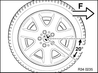 Bring wheel into position (tapped hole turned down approx. 20° from horizontal).