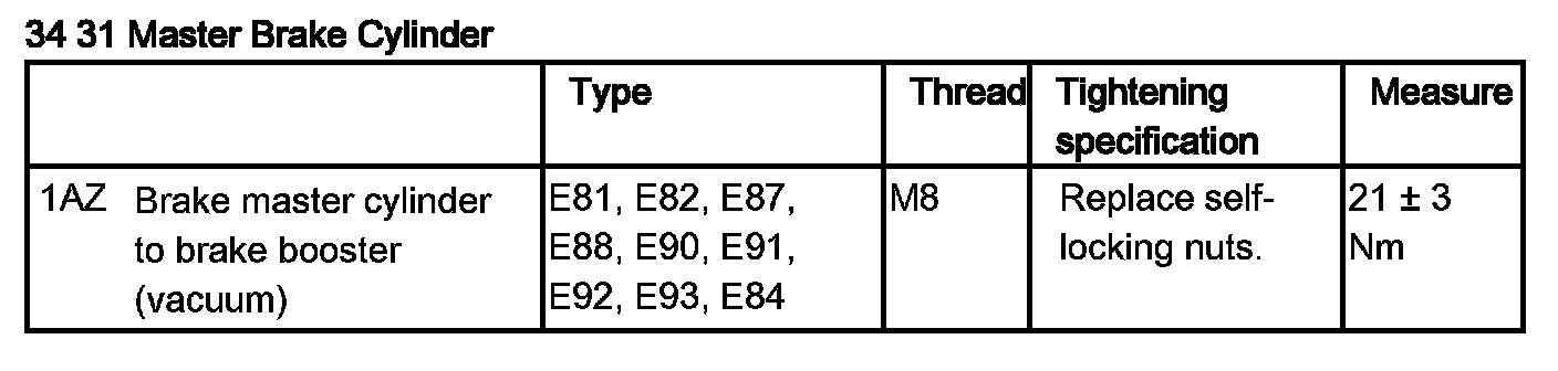 34 31 Brake Master Cylinder