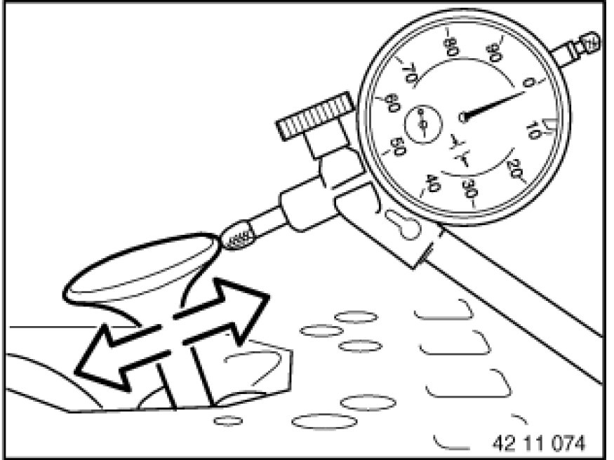 To measure tilt clearance, install a new valve so that end of valve stem is flush with valve guide.