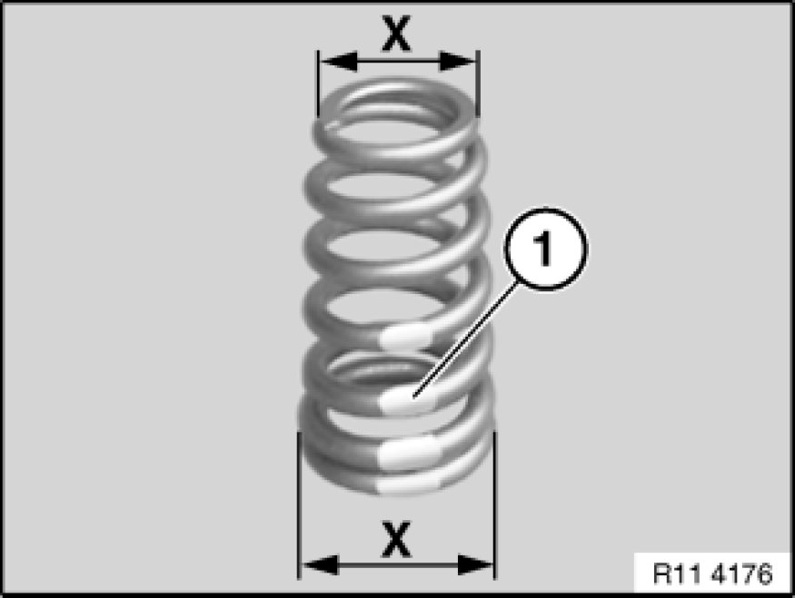 Color marking (1) is normally on lower end of valve spring.
