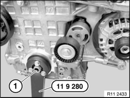 Screw special tool 11 9 280 onto hub of vibration damper.