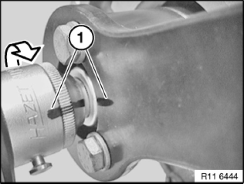 Tighten down special tool 11 5 200 with screws (1) to hub.
