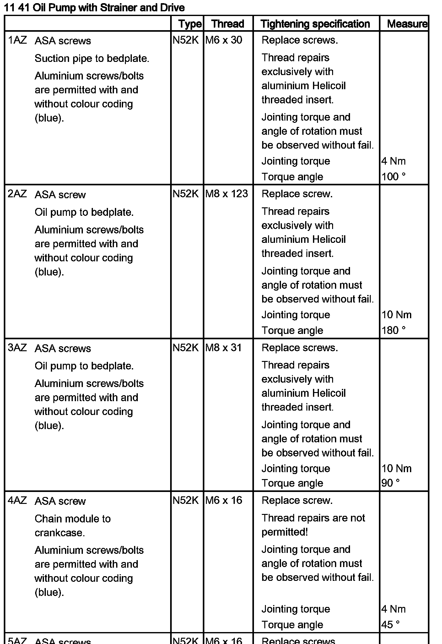 11 41 010 Removing and installing/replacing chain module for oil pump/vacuum pump (N52K)