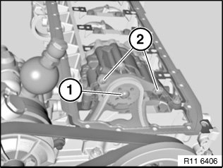 Release screw (1) for oil pump triangular drive with special tool 11 8 640.