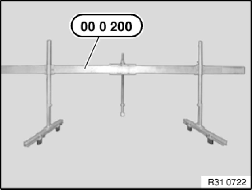 Assemble cross member 00 0 200 with special tools 00 0 202, 00 0 204, 00 0 208.