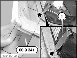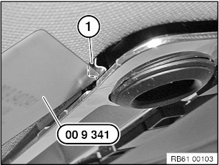 Position special tool 00 9 341 as illustrated and release retaining clips (1).