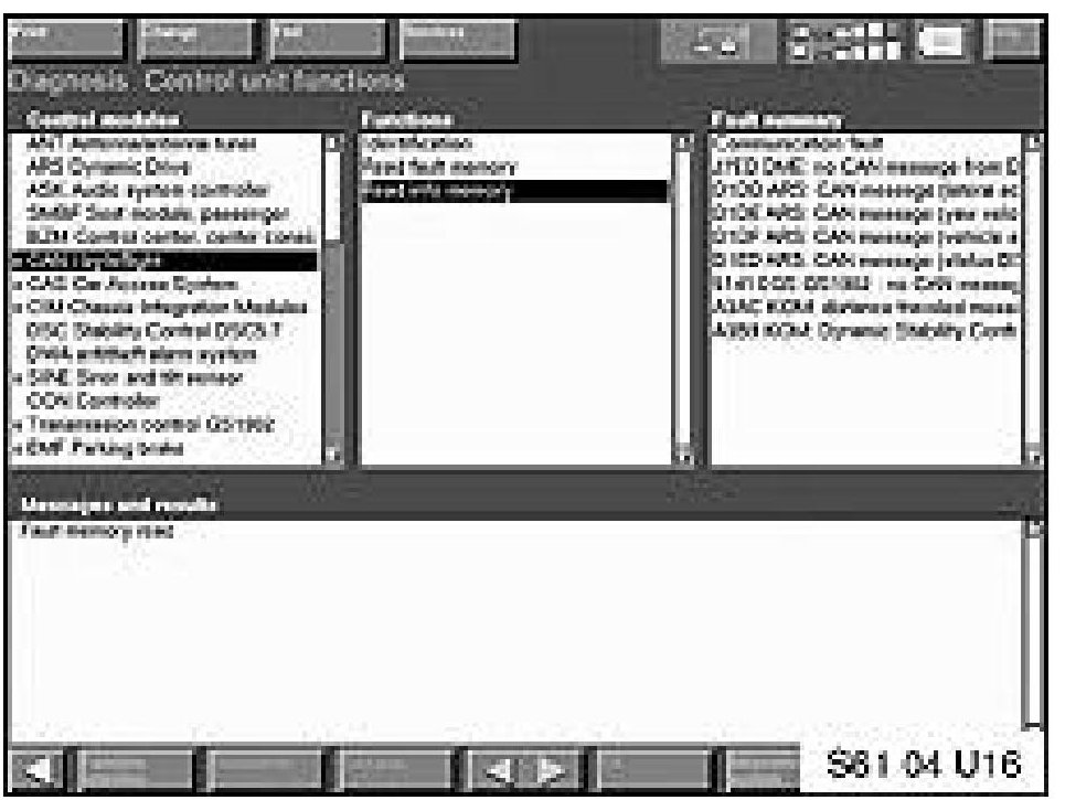 ^ The fault memories can be displayed by selecting "Control Module Functions/CAN Byteflight/Read Info memory". The lists of faults that the system analysis looks at are displayed and can be selected for viewing.