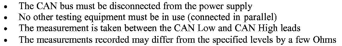 In order to prevent signal reflection, a 120 ohms resistor is fitted to two CAN bus nodes (at the extremities of the PT-CAN network). The two terminal resistors are connected in parallel and form a shunt impedance of 60 ohms. When the power supply is switched off the shunt impedance can be measured across the communication leads. In addition, the individual resistors can be tested independently of one another. (Tip for 60 ohms measurement: disconnect an easily accessible control module (not fitted with terminal resistor) from the bus and then measure the impedance between CAN Low and CAN High leads on the connector.)
