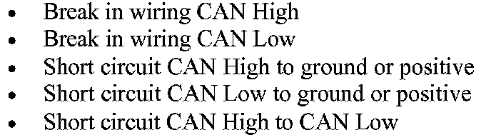 The communication fault provides an overview of the control modules that have failed on the CAN bus, i.e. were no longer able to communicate. The "CAN communication fault" can only be read out if the fault is currently not present. If the fault is currently present, it is no longer possible to communicate with the control module. This means that the fault memory cannot be read either! Physical wire fault can be detected by the use of fault-tolerant CAN transceivers. However, at the moment there are only fault-tolerant transceivers for the K-CAN data bus. This means that only control modules that are connected to the K-CAN data bus can have made the fault memory entry "CAN wire fault". The CAN transceiver is also unable to distinguish between the individual fault categories shown. If the bus fault "CAN wire fault" is entered in a control module, this can mean (Refer to the image above).