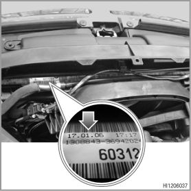 On vehicles where there are complaints about a heat output deficiency, it is possible that there is a fault within the radiator. The production date of the radiator must be checked. This can be found on a label at the top of the radiator (see graphic).