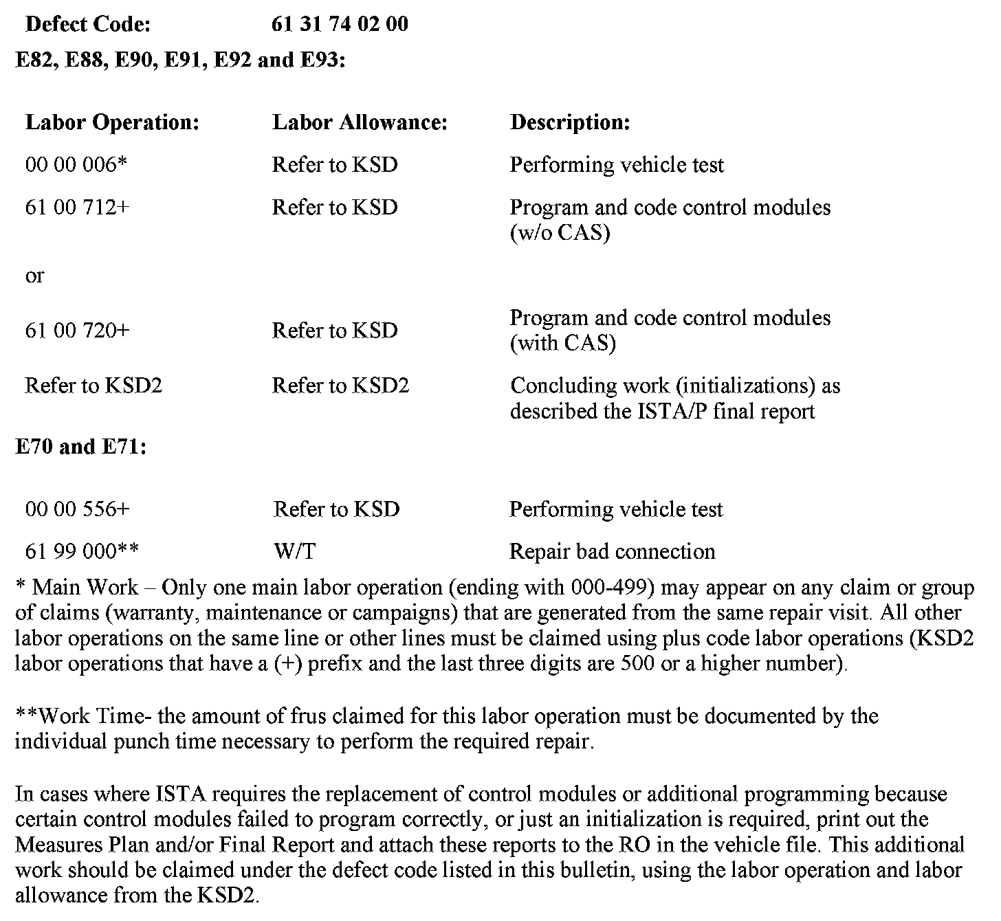 For the E82, E88, E90, E91, E92 and E93, program the vehicle using ISTA/P 2.35.0 or later.