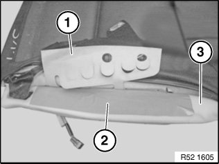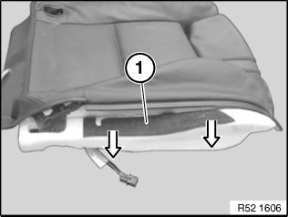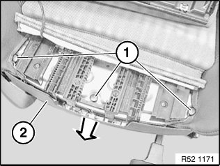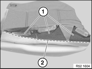 Partially lever out cover welt (1) from seat frame (2) (on side section, exit side).