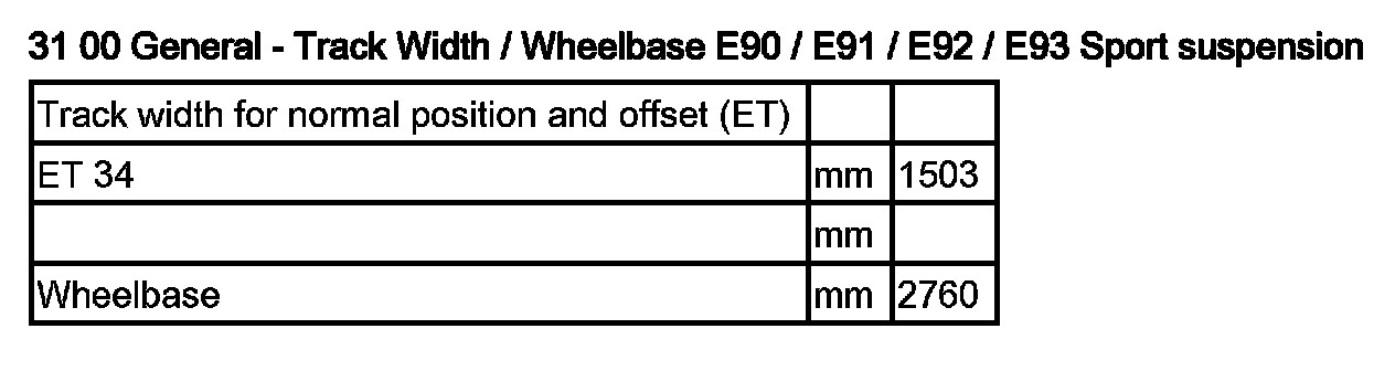 31 00 General - Track Width / Wheelbase / Sport Suspension