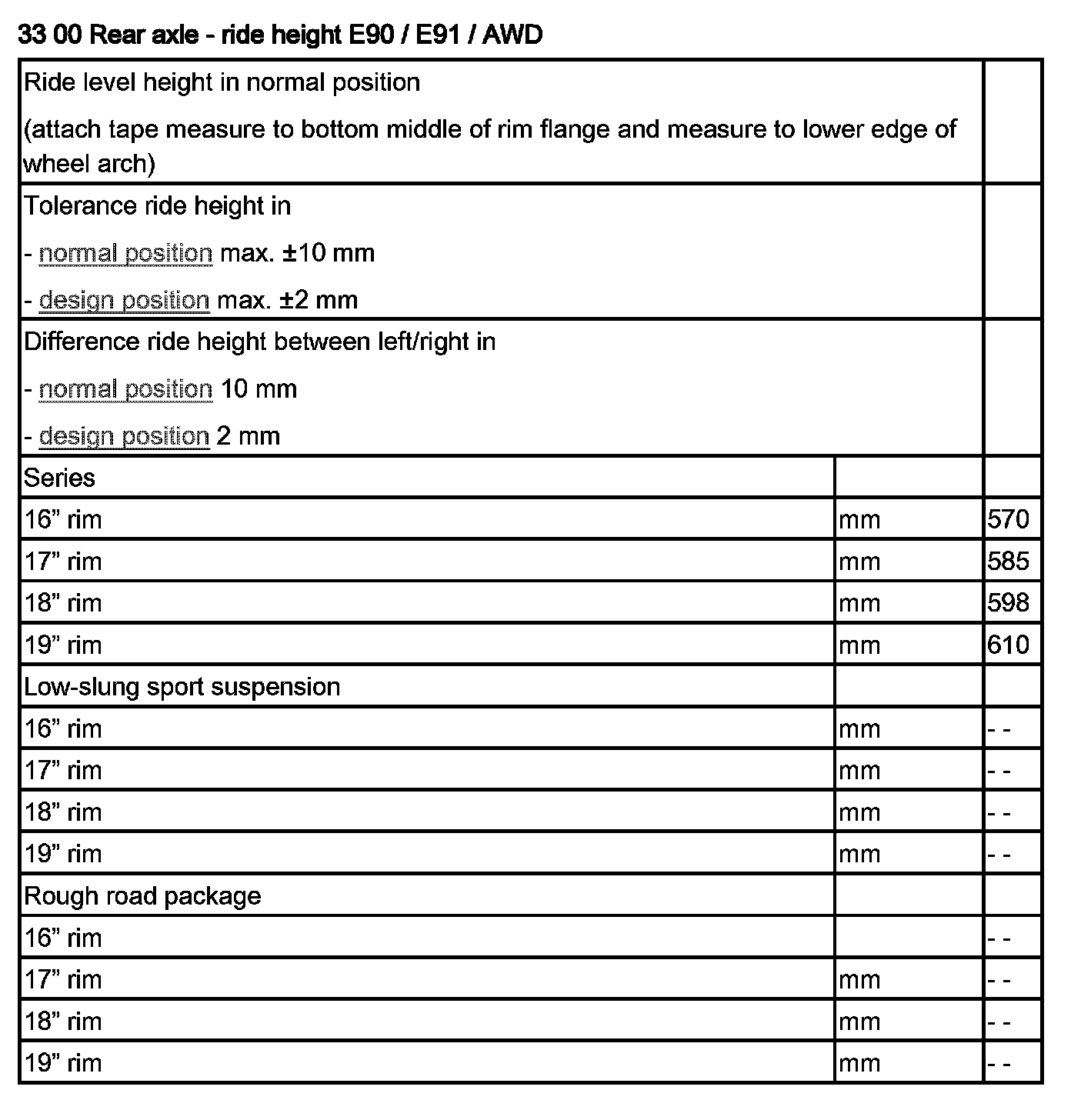 33 00 Ride Height E90, E91 / AWD