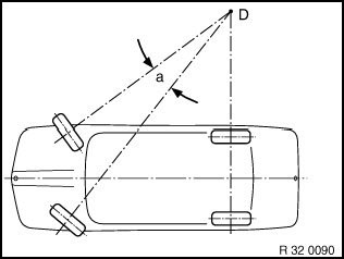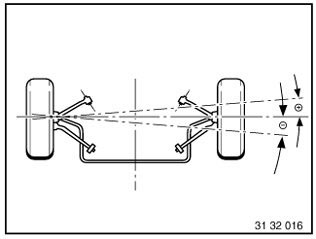 A correctly adjusted toe angle difference produces equal values for left and right lock with consideration of factory tolerances.