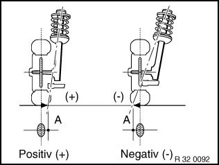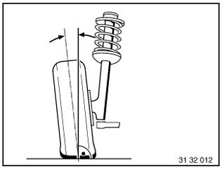 Is the inclination of the kingpin in the direction of travel viewed from the side. The line through the center point of the spring strut support bearing and the control arm ball joint corresponds to the "kingpin".