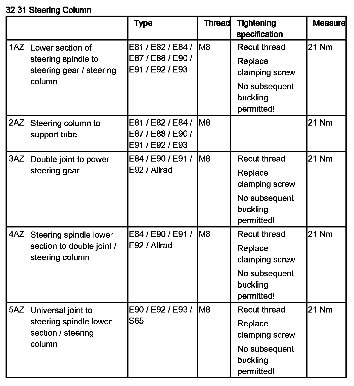 32 31 070 Removing and Installing/Replacing Steering Spindle Lower Section