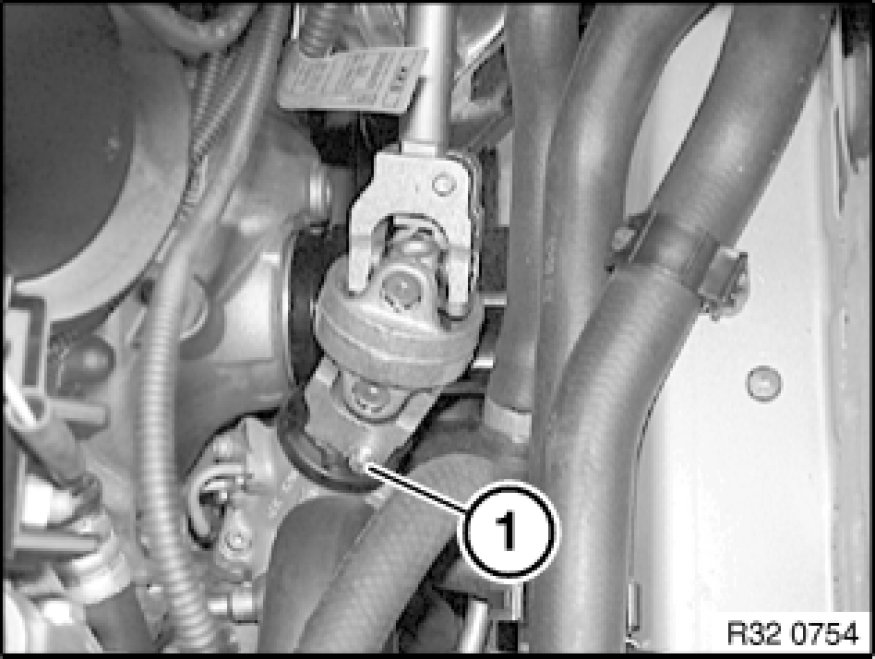 Detach double joint (1) from power steering gear.