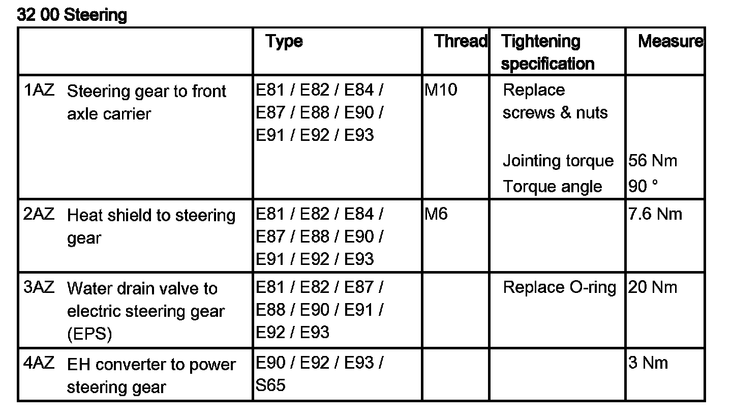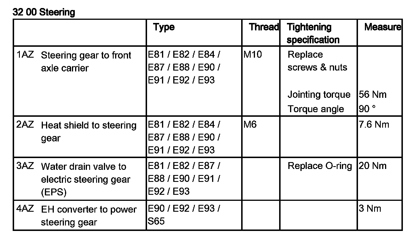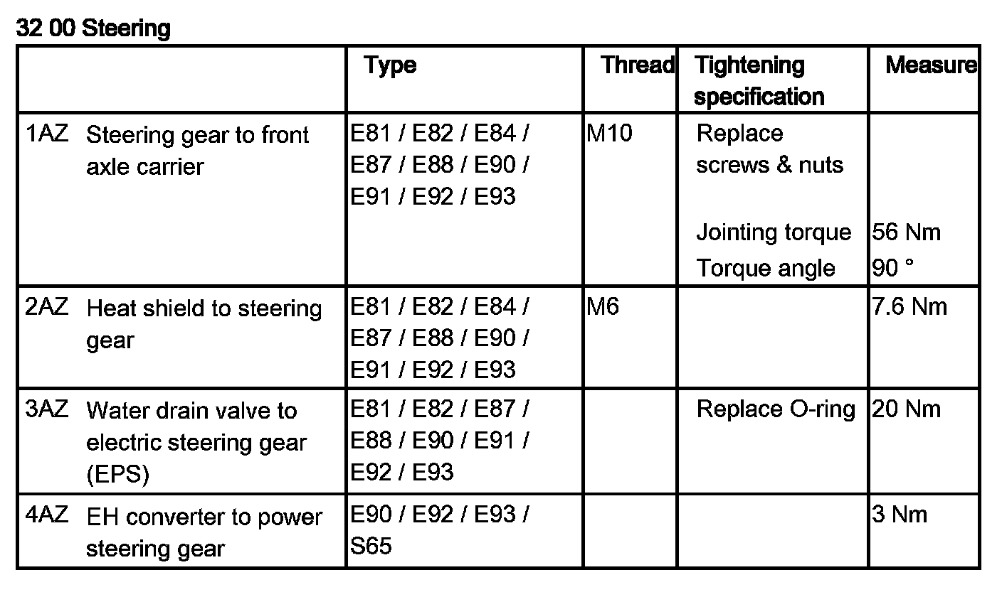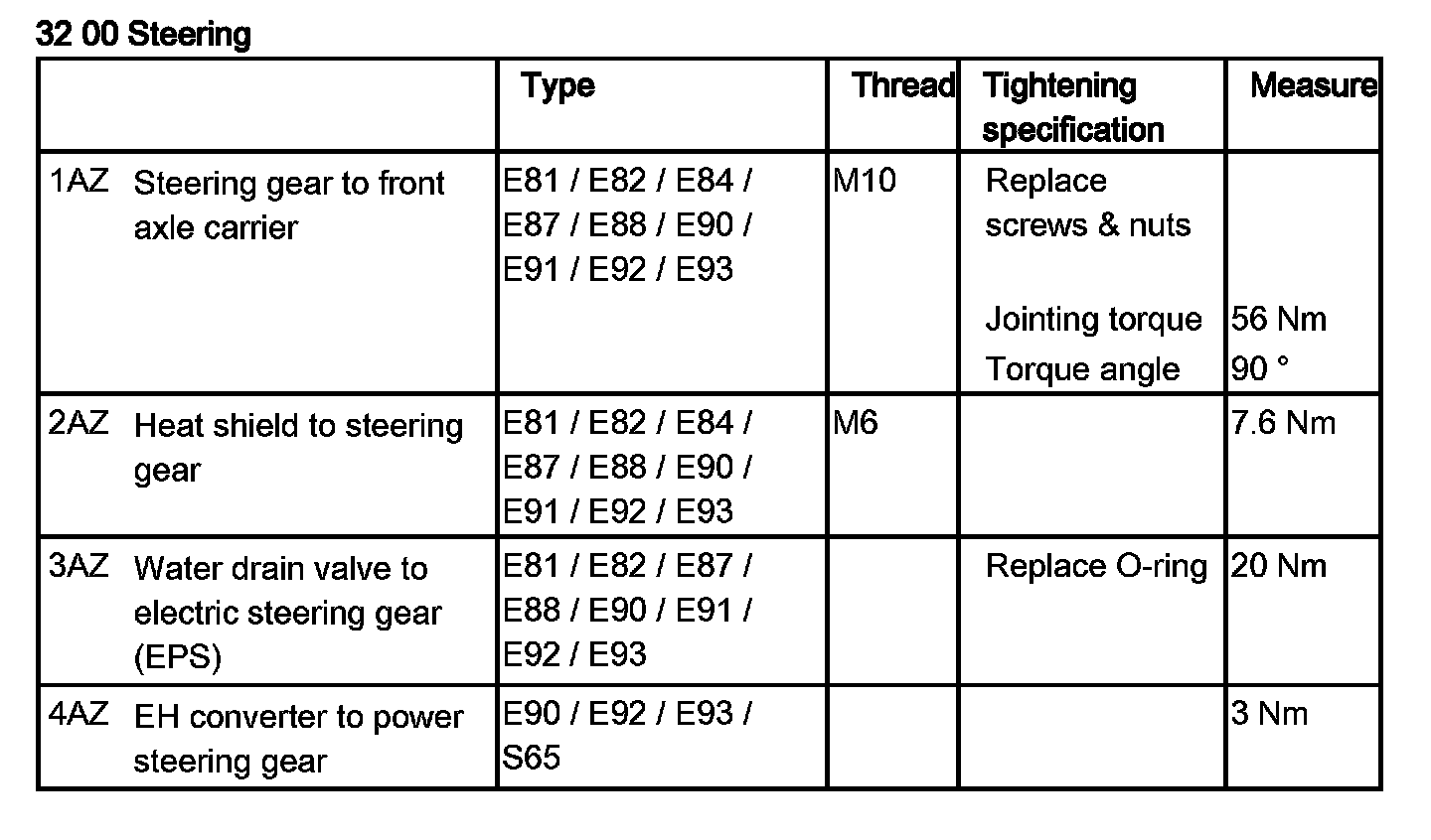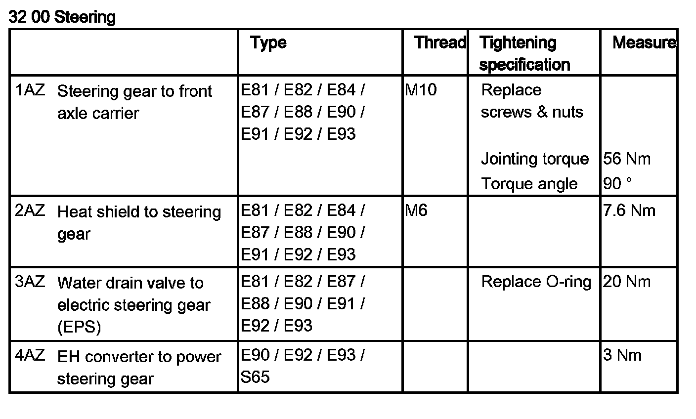 32 13 070 Removing and Installing/Replacing Electric Steering Gear (EPS)