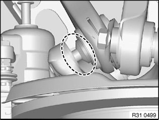 If the control arm is detached from the rear axle support, it is necessary after reinstallation to carry out a wheel/chassis alignment check.