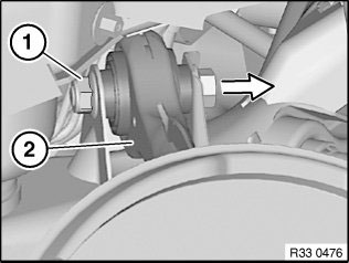 Make sure during installation that in the connection area to the wheel carrier the tapered end of the bearing bushing (of the rubber mount) points in the direction of the wheel carrier.