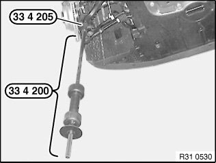 33 4 205 Unscrew nut and screw special tool onto guide joint.