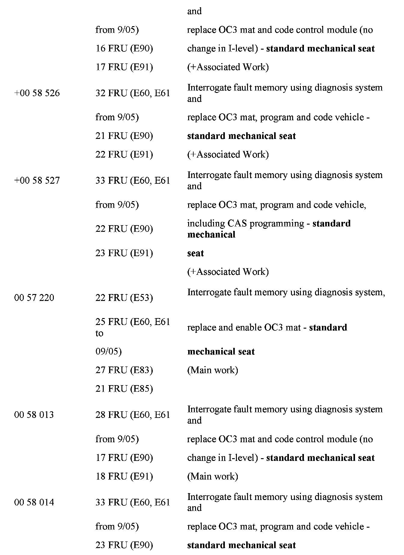 [NEW] Note that on E65 and E66 vehicles, the OC3 mat was introduced from 03/2004. Earlier vehicles had an SBE seat occupancy detection system. However, letters were mistakenly sent to owners of all vehicles up to 11/2005. Therefore BMW will honor this extended warranty for seat mat defects on the