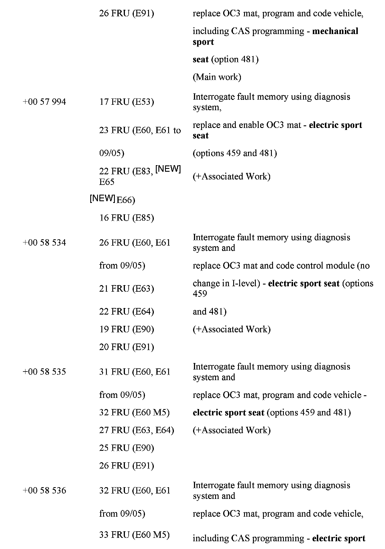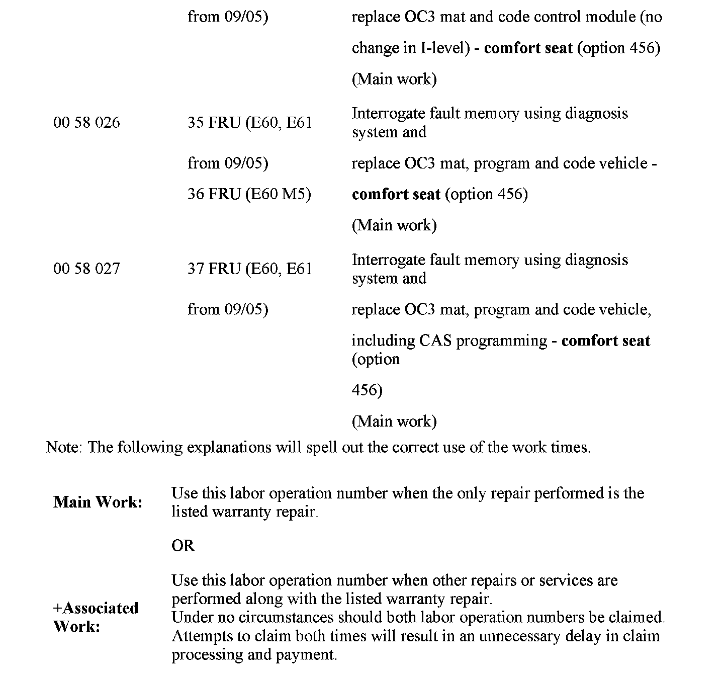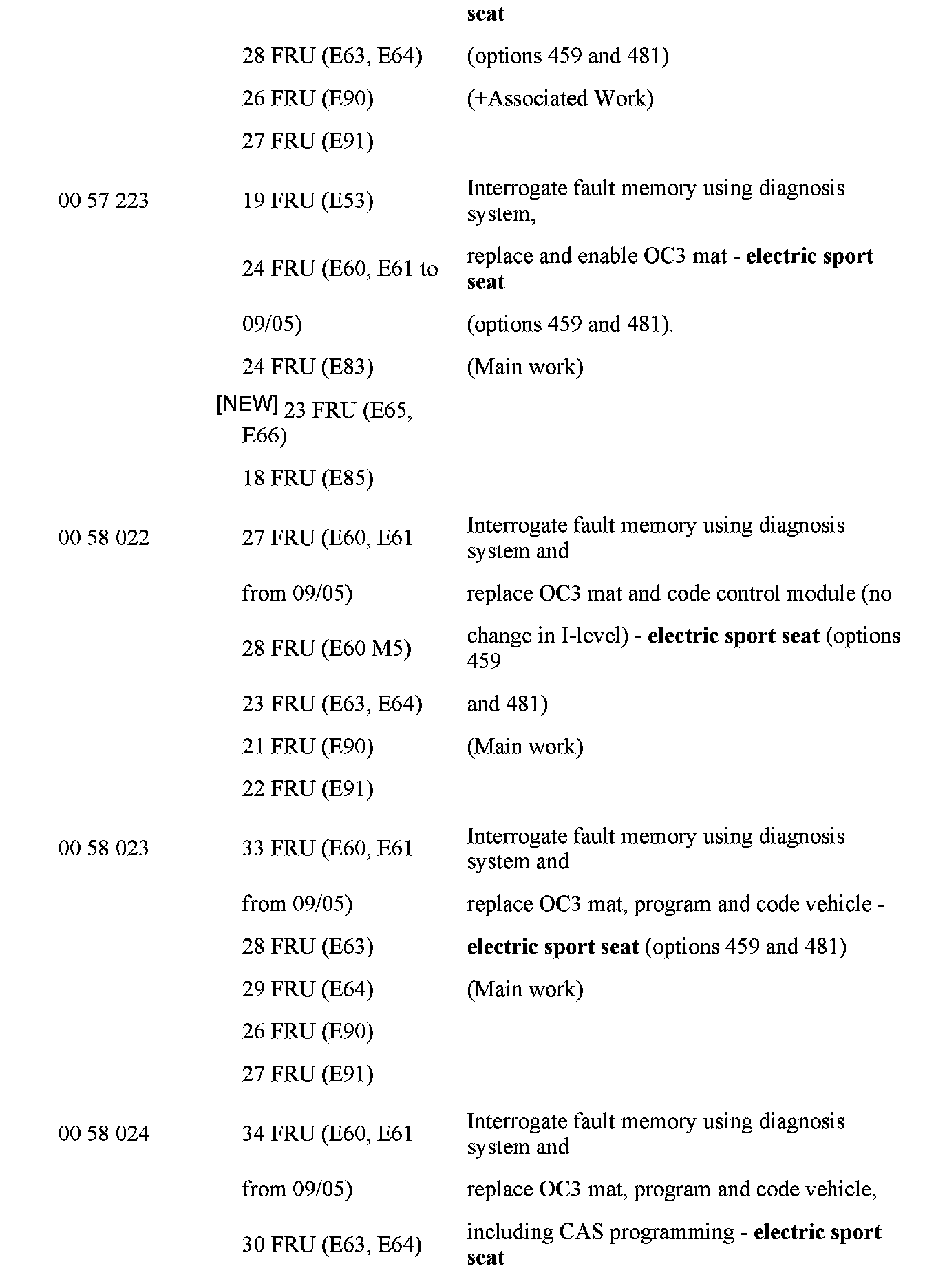 E60, E61 (5 Series) vehicles produced up to 11/2005