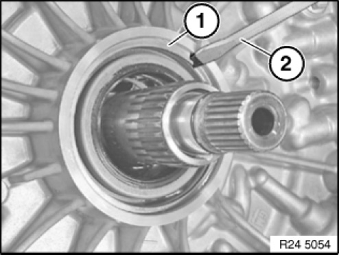 Drive in radial shaft seal (1) with special tool 24 2 360 as far as it will go.