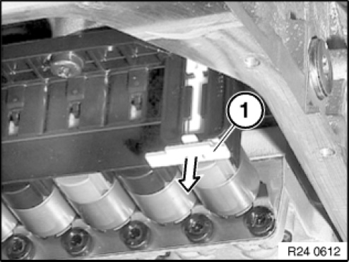 Insert special tool 24 2 390 in sealing sleeve (1).