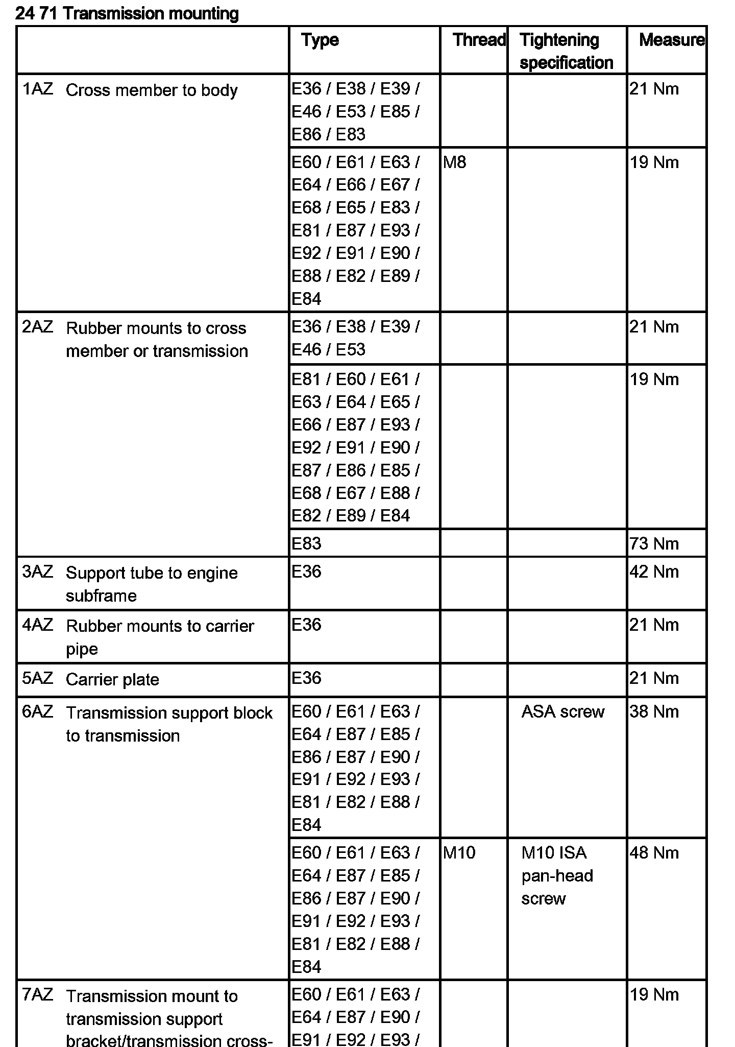 Tightening torque 24 71 6AZ.