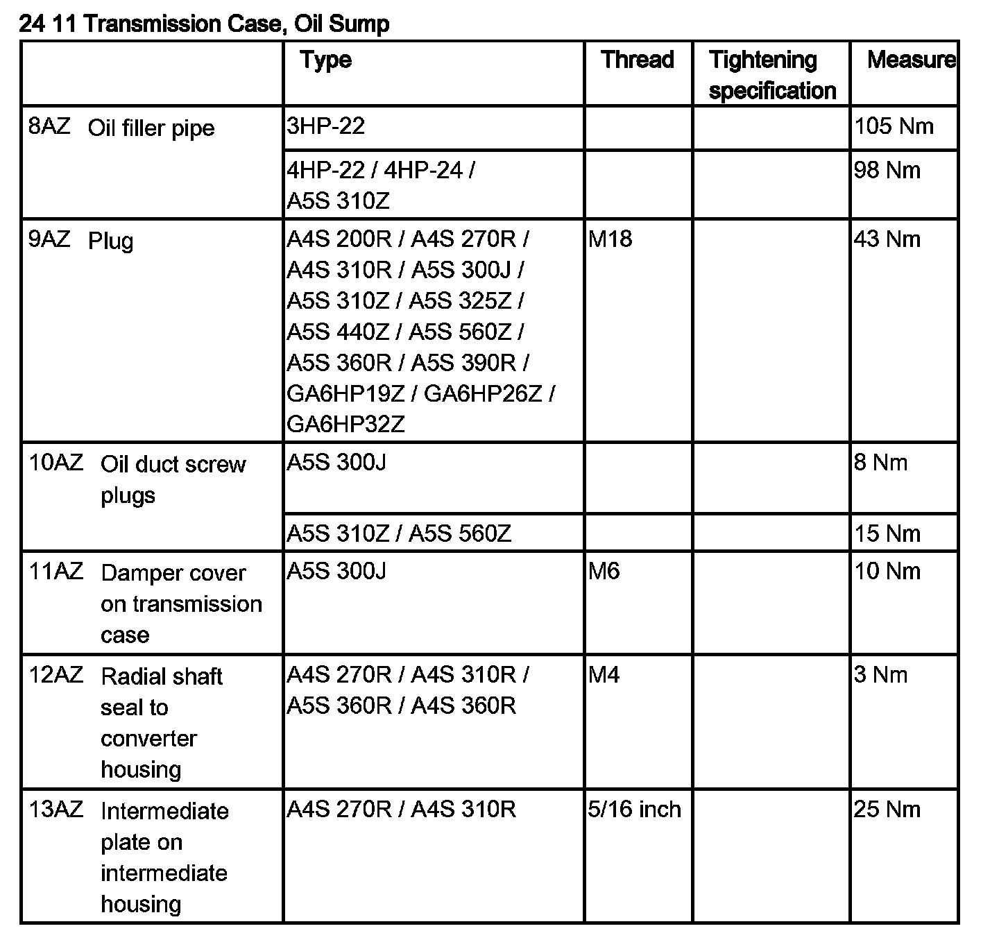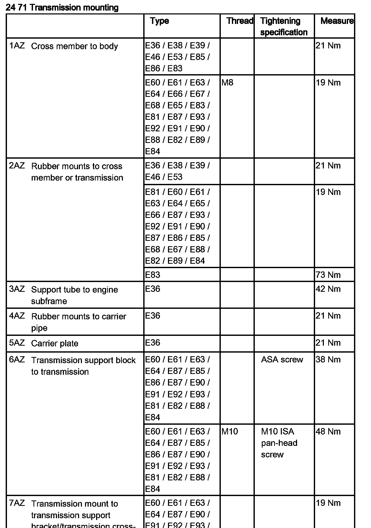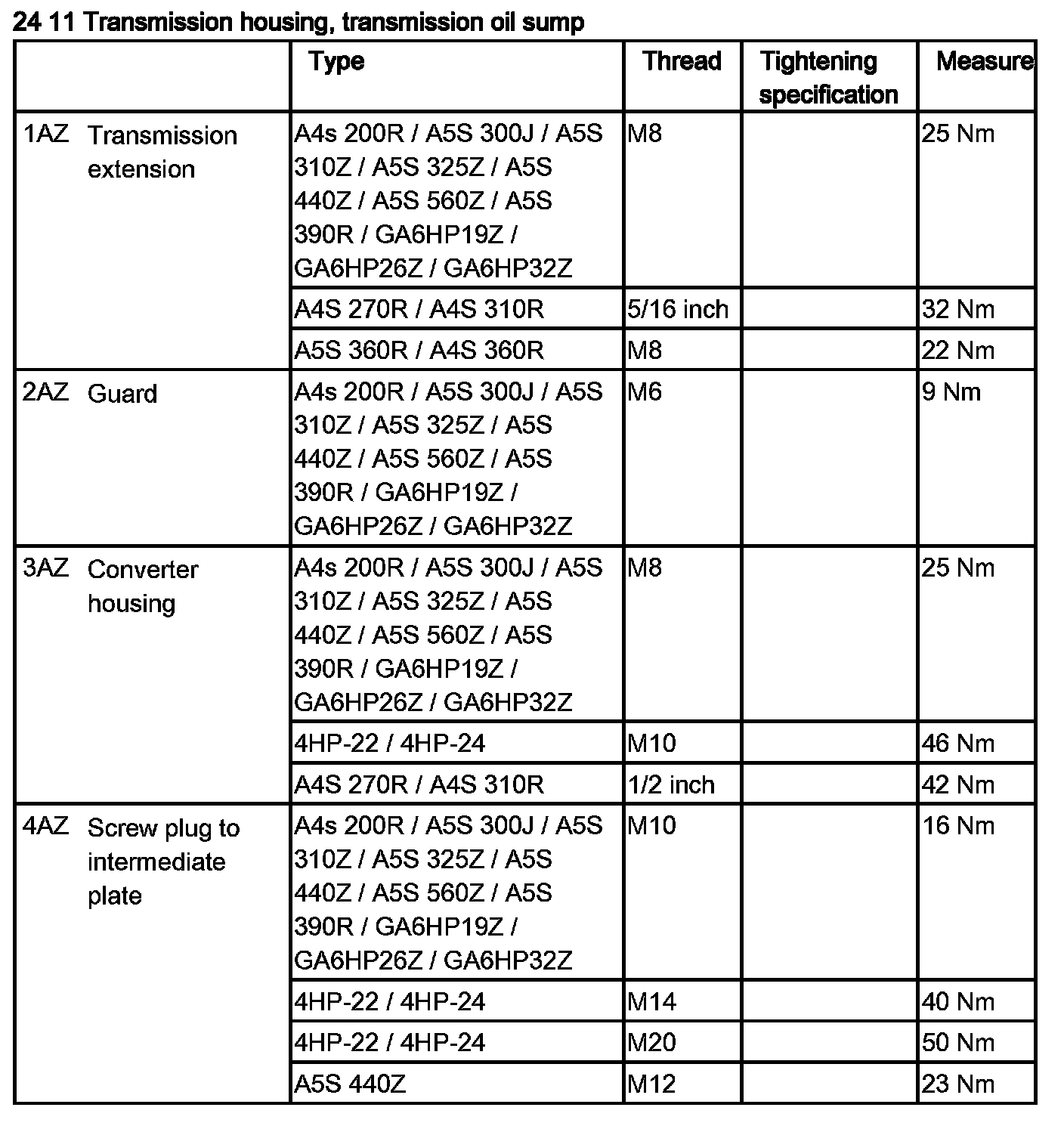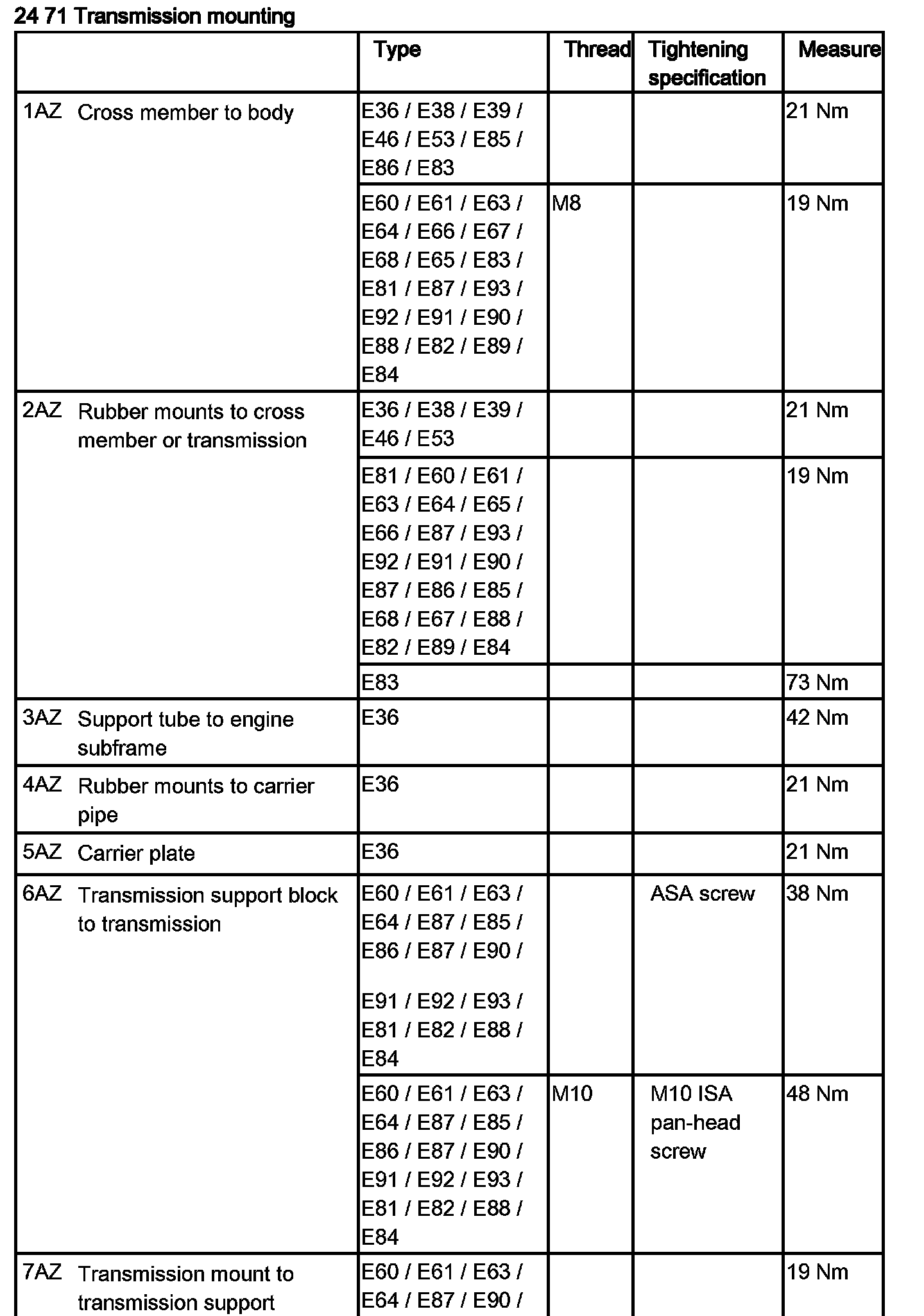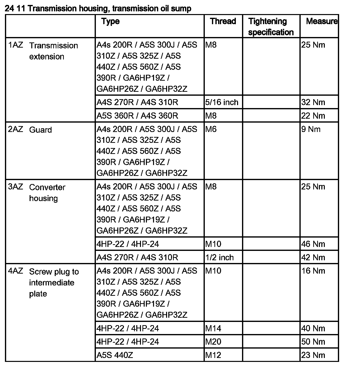 If necessary, modify transmission bearing block. Tightening torque 24 71 6AZ.