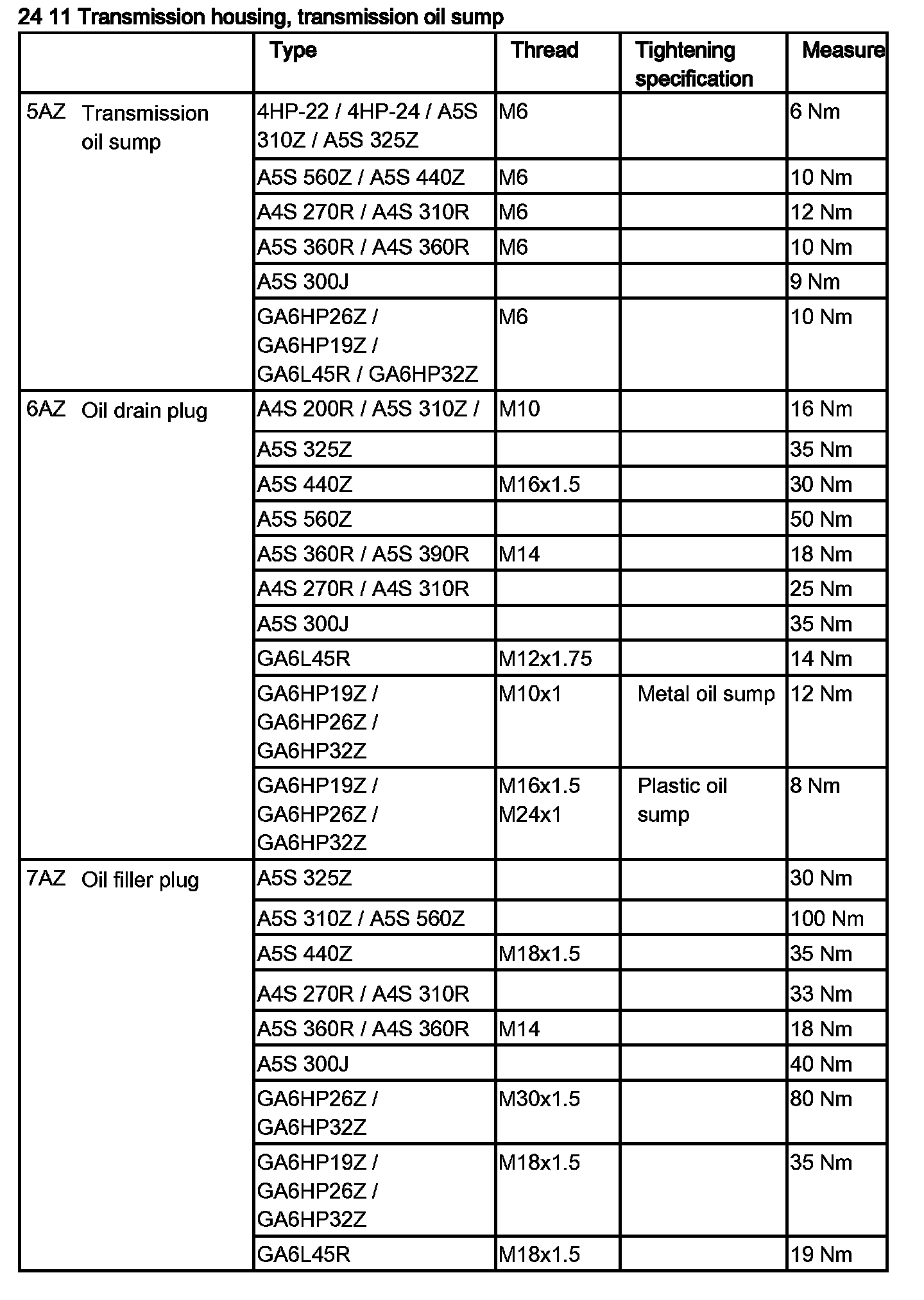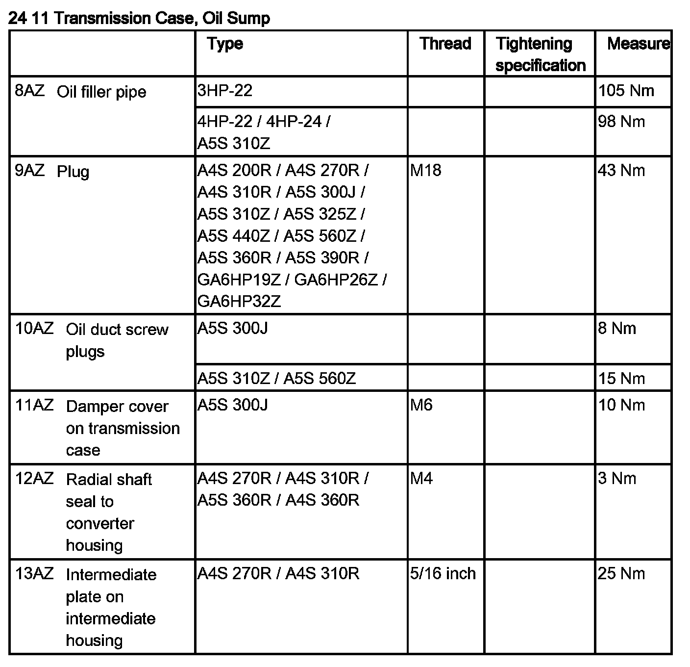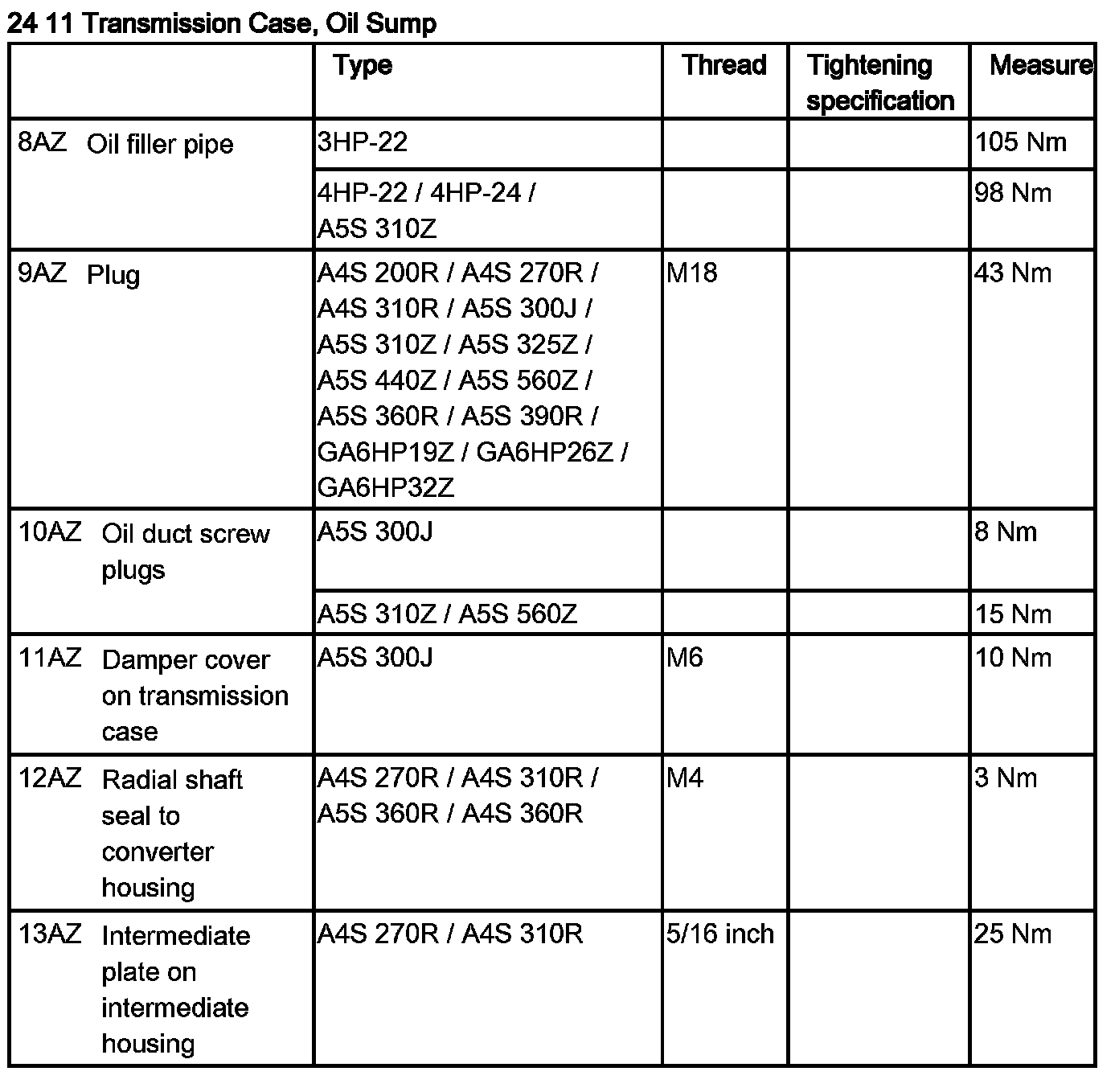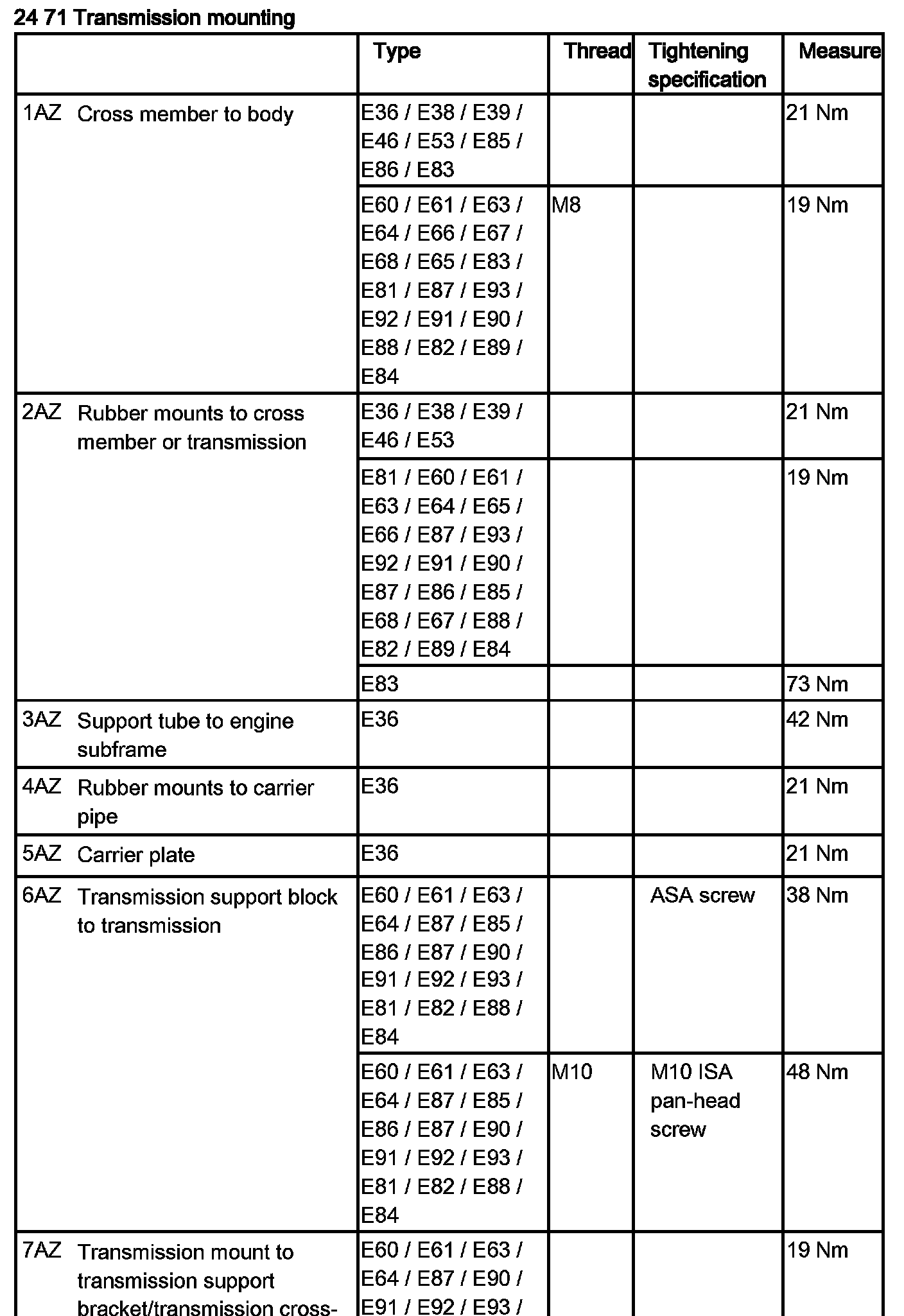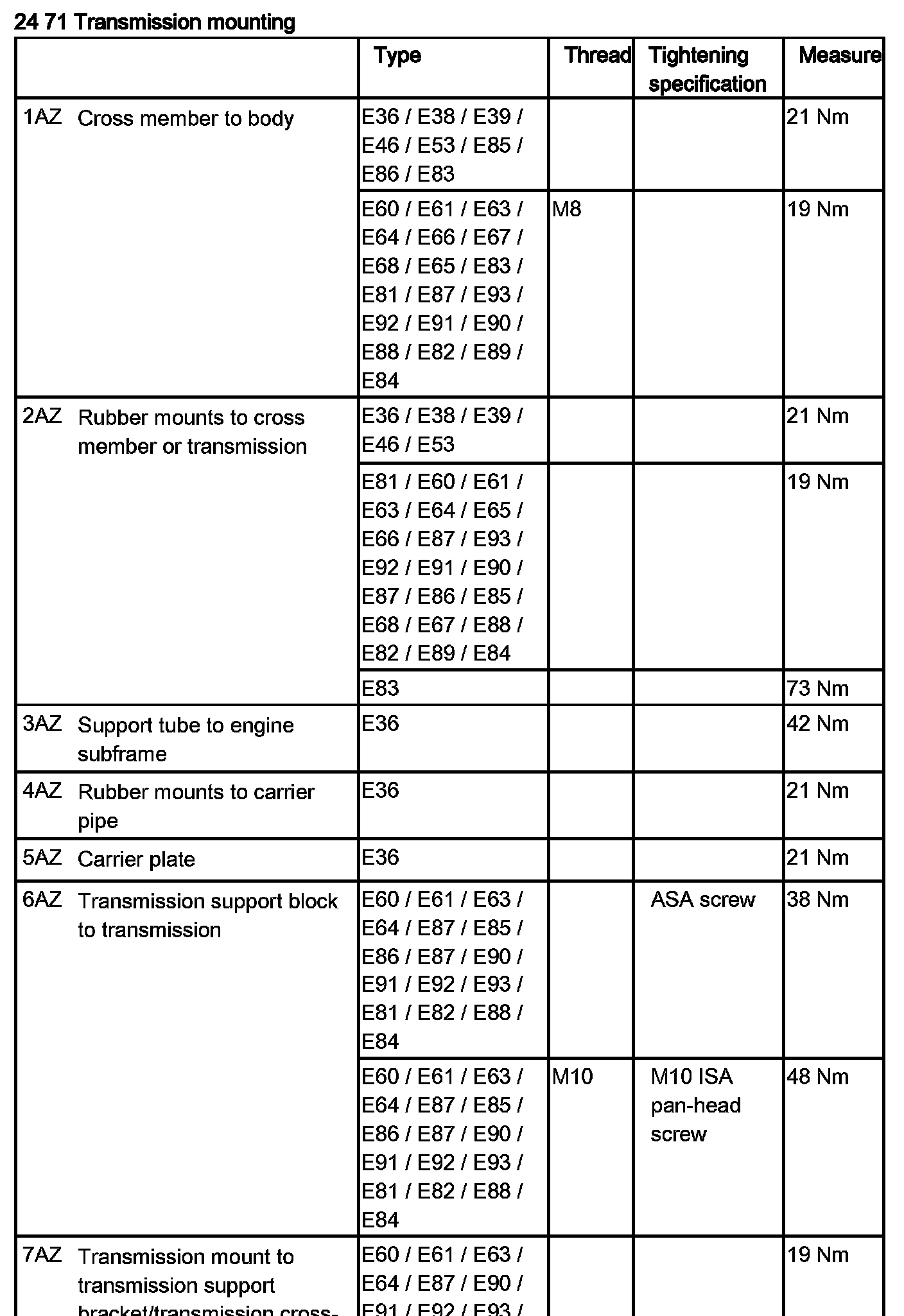 If necessary, modify transmission bearing block. Tightening torque 24 71 6AZ.