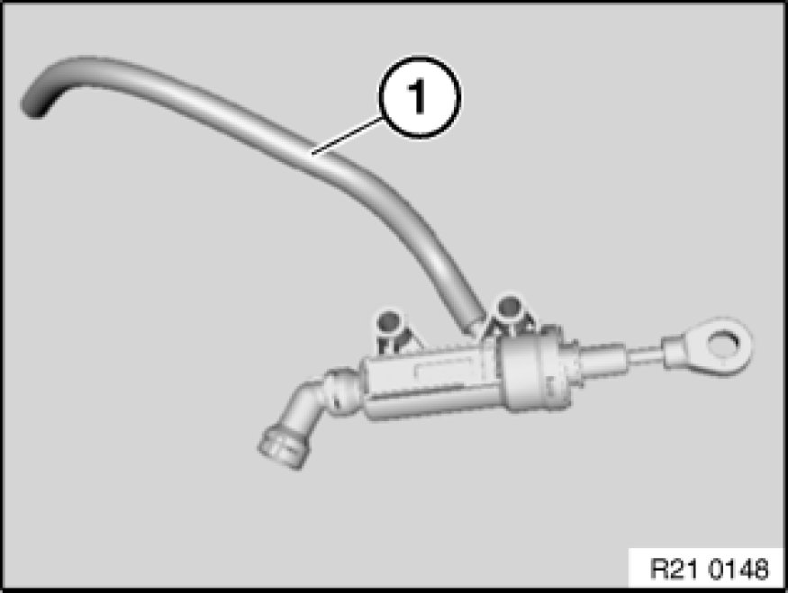 Draw off brake fluid up to supply hose of clutch hydraulic system (1). For this purpose, use only a vacuum pipe that is exclusively used for removing brake fluid.