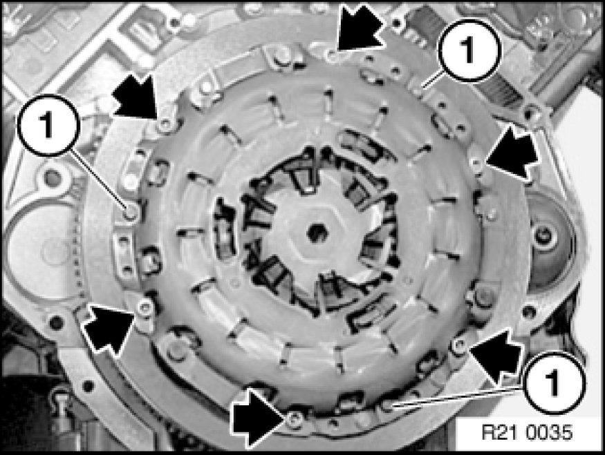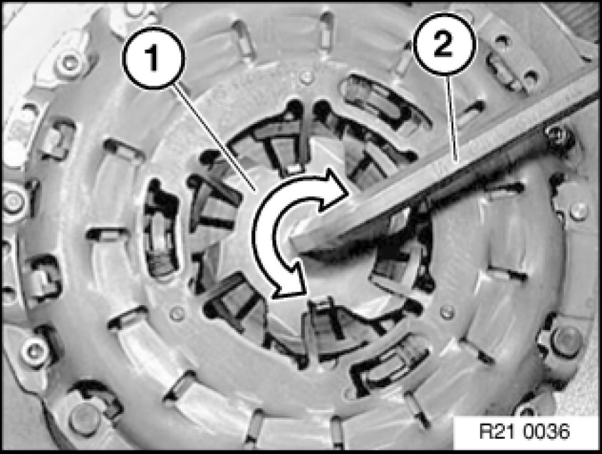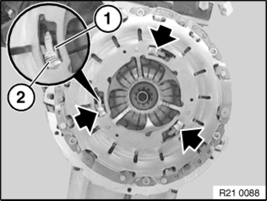 SAC clutch (1) must be secured by way of dowel pins (2).