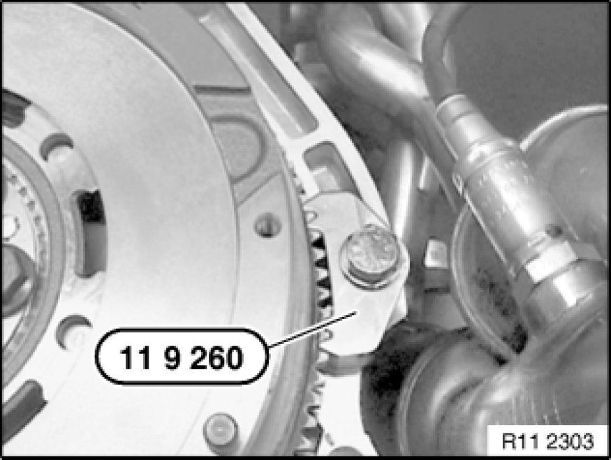 Insert special tool 21 2 170 21 2 170 Tensioning Tool only in area of bores for dowel pins.