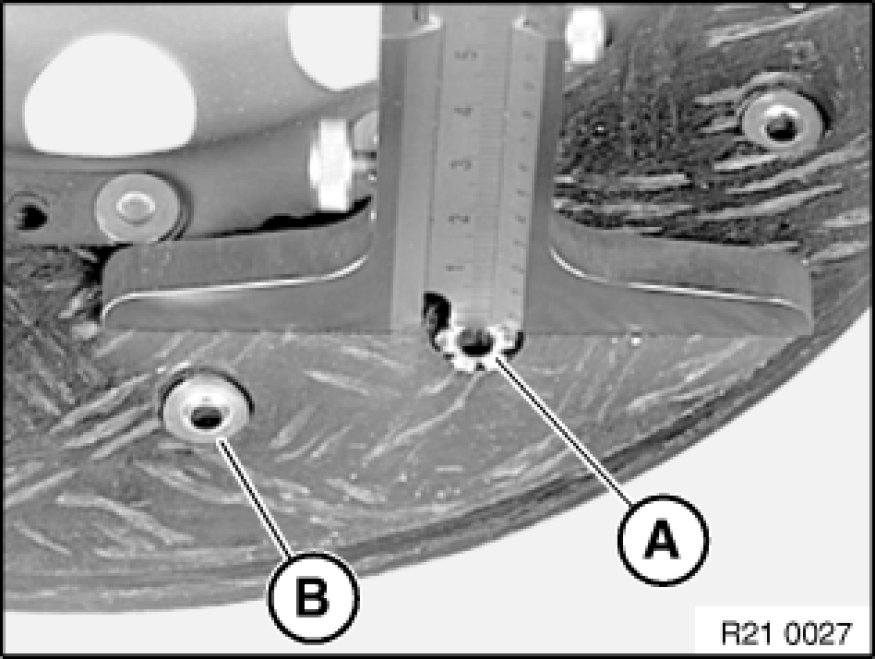 Measure lining protrusion at lining rivets at closing head (A) in each case.