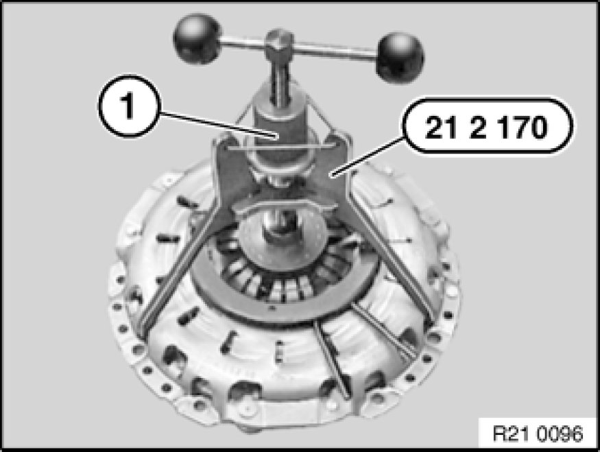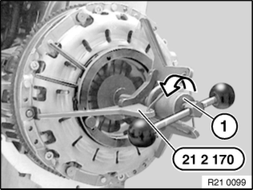 Release knurled screw (1) and remove special tool 21 2 170 21 2 170 Tensioning Tool from SAC clutch.