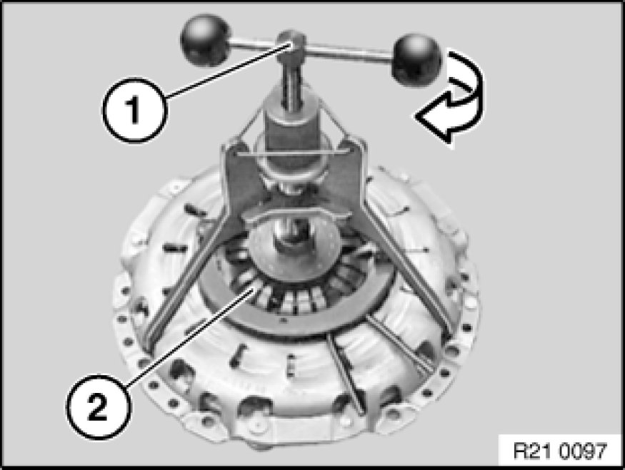 Screw in spindle (1) until diaphragm spring (2) is tensioned up to stop.