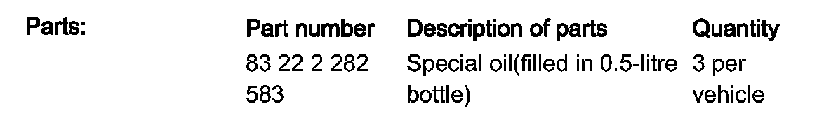 For vehicles which have been converted to special oil because of a complaint, the special oil must continue to be used for future oil changes performed at the prescribed inspection.