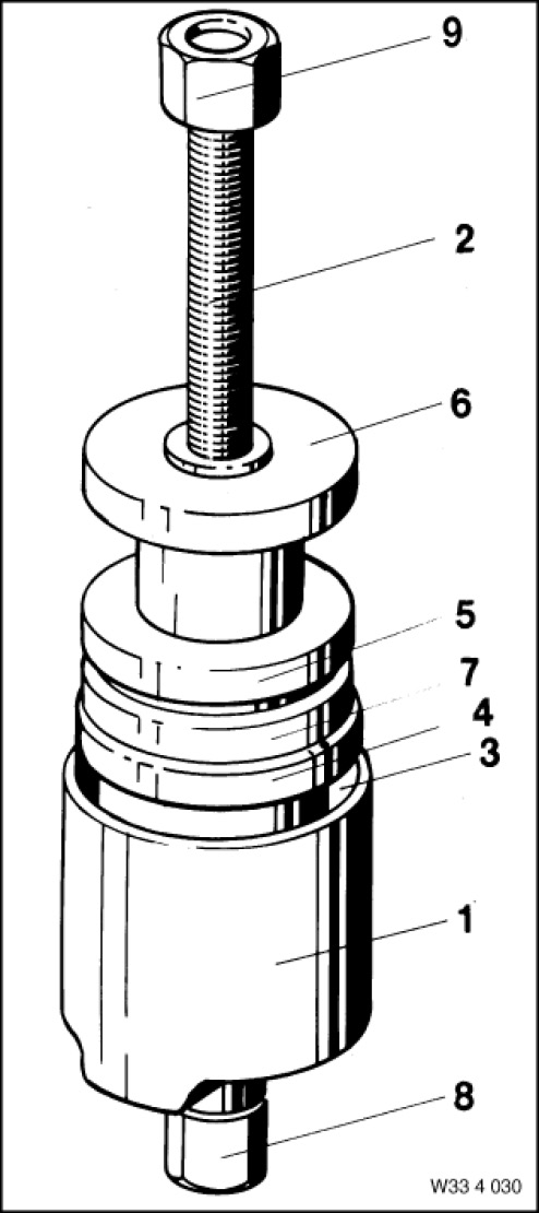 NOTE: For counter support when removing the rear wheel bearing Discontinued, can only be ordered as part of complete tool 33 4 030 (0492349).