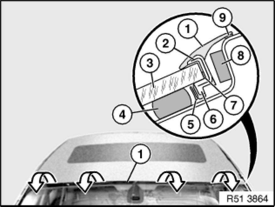 51 31 021 - Removing and installing / replacing rubber frame for windscreen (top)
